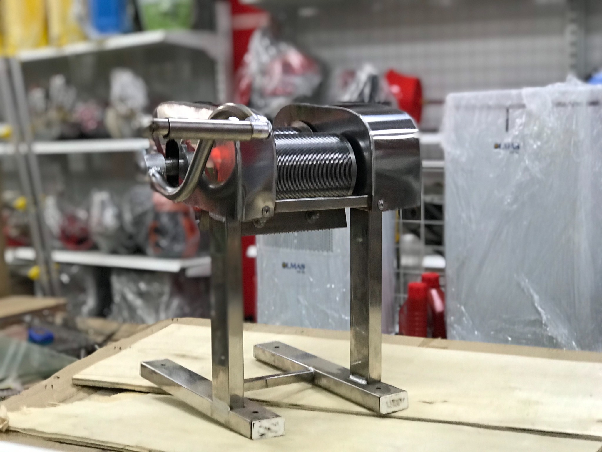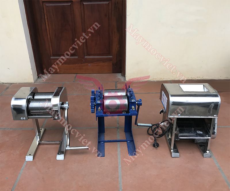 Bộ trục cuốn và dao cắt bằng thép, có bề rộng 1 trục 10cm, bề dài trục 17cm.