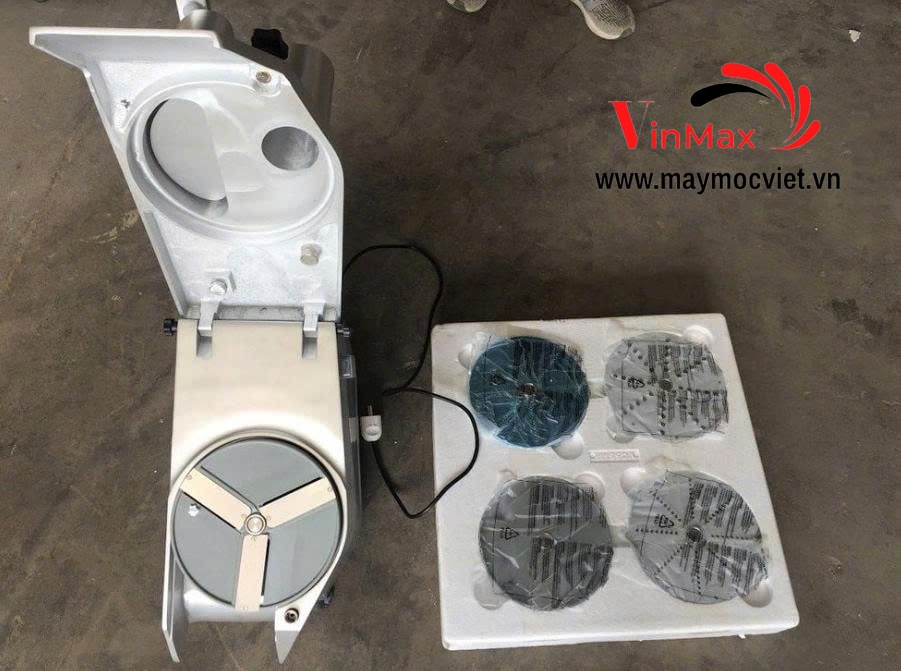 - Bước 2: Lắp lưỡi dao phù hợp với nhu cầu cắt thái, kết nối máy với nguồn điện và bật công tắc để khởi động.