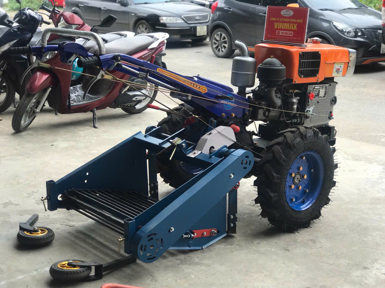 Máy thu hoạch khoai tây hàm 70cm gắn đầu nổ D18 TH718 là thiết bị cơ giới nông nghiệp giúp bà con thu hoạch khoai tây, khoai lang và các loại củ nhanh chóng, hiệu quả. Máy được thiết kế chắc chắn với hệ thống hàm rung sàng đất rộng 70cm, giúp tách đất và củ nhanh, hạn chế làm dập nát nông sản.