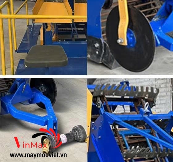 Máy có khả năng đào, tách đất, sàng củ và gom khoai gọn gàng, phù hợp với nhiều loại địa hình canh tác như đất cát, đất thịt, đất pha sét.