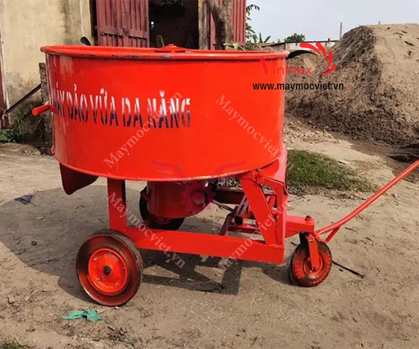 Thùng trộn: Thùng trộn đường kính 1300mm làm từ thép tấm chắc chắn, giúp máy bền khỏe, thích hợp với môi trường làm việc ngoài trời.