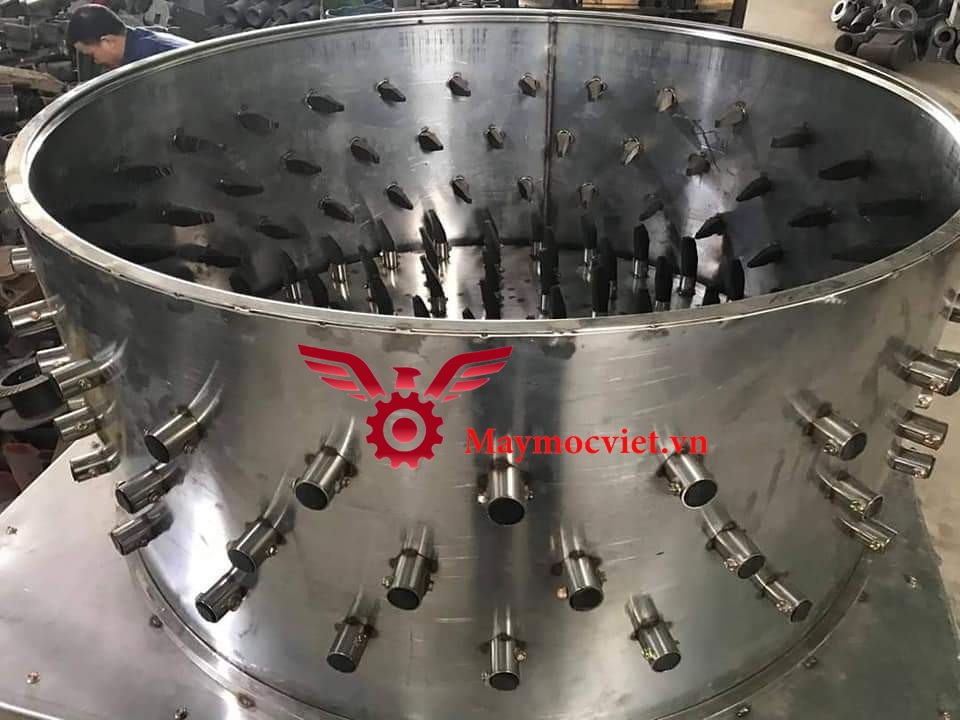 - Toàn bộ thân của máy vặt lông dê VM-VLP120 đươc làm từ inox dày dặn, bền đẹp, có khả năng chống gỉ sét, vừa giúp vệ sinh máy dễ dàng lại vừa đảm bảo vệ sinh an toàn thực phẩm.