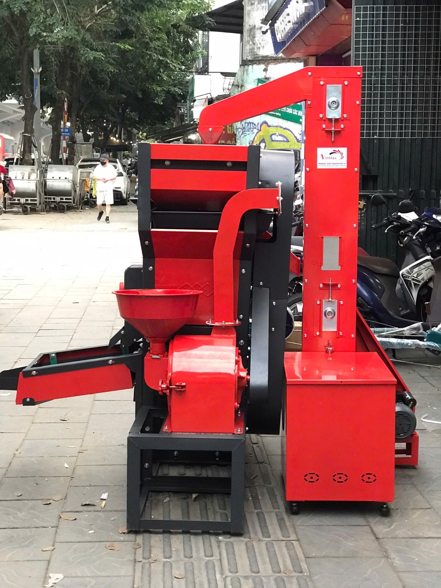 Lọc tạp chất đầu vào: Máy được trang bị bộ phận lọc tạp chất để loại bỏ những vật thể không mong muốn như đá, cành cây, lá hoặc bụi bẩn trước khi lúa được đưa vào quy trình xay xát. Điều này giúp bảo vệ máy khỏi hư hỏng và đảm bảo chất lượng sản phẩm gạo thành phẩm.
