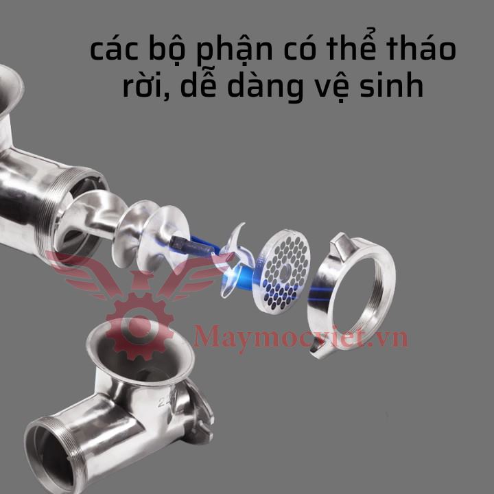 Toàn bộ máy xay đùn thịt VM22 đều được làm từ chất liệu inox cao cấp, bền bỉ, hạn chế han gỉ khi tiếp xúc với muối, nước và thực phẩm, đảm bảo an toàn vệ sinh.
