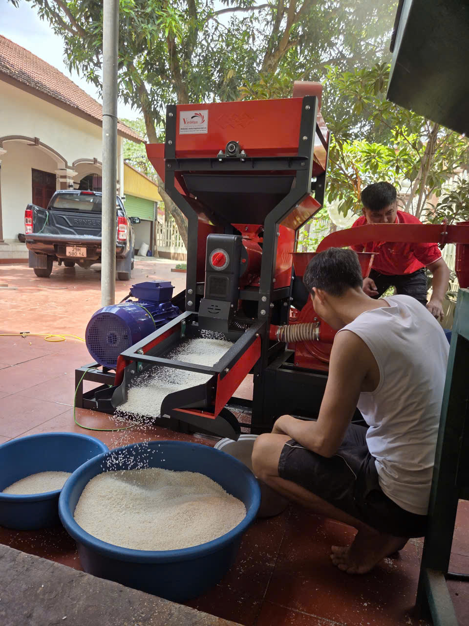 Kiểm tra và loại bỏ tạp chất trong thóc trước khi cho vào máy.