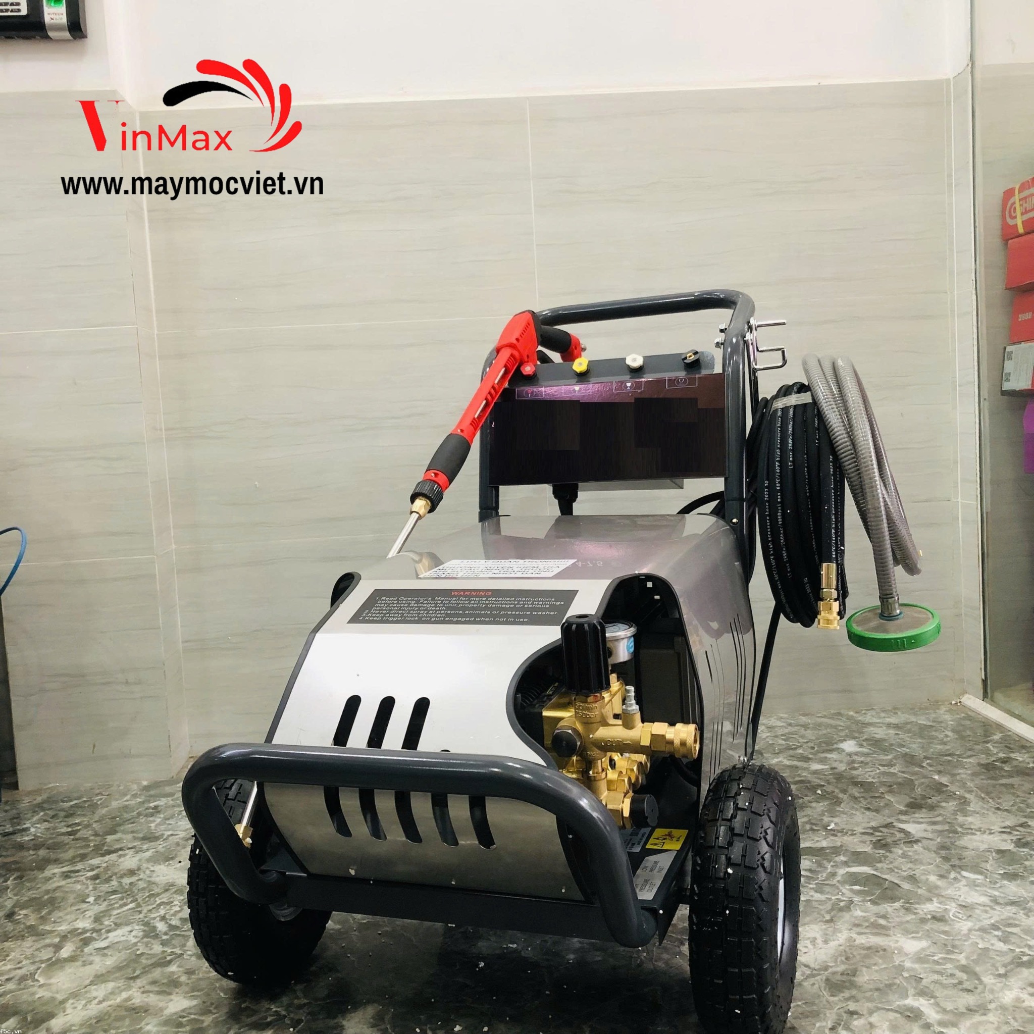 * Máy kèm theo 10m dây xịt cao áp, 1 súng xịt, 4 béc xịt