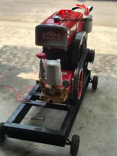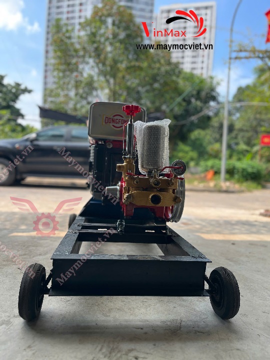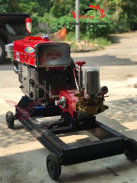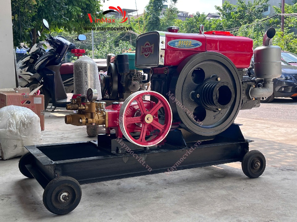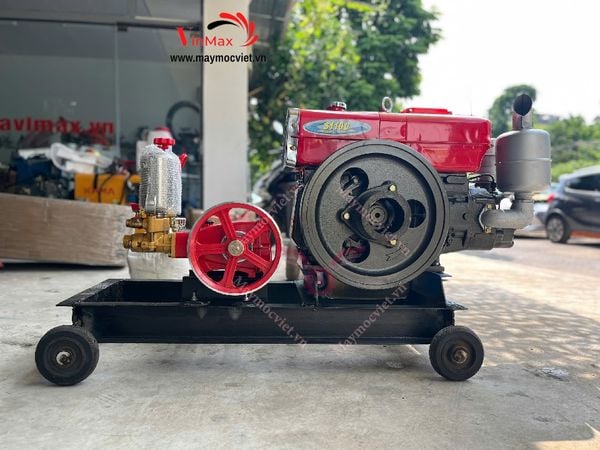 Máy được cấu thành từ động cơ dầu D15 mạnh mẽ và đầu xịt áp lực cao VMX157 công suất 7HP. Sự kết hợp này giúp máy hoạt động ổn định, cho áp lực phun mạnh, lưu lượng nước lớn, đáp ứng nhu cầu xịt rửa – sát trùng diện tích chuồng trại rộng. Máy còn thích hợp dùng để rửa chuồng heo, gà, bò, dê, và cả các công việc rửa xe, vệ sinh dụng cụ, thiết bị nông nghiệp.