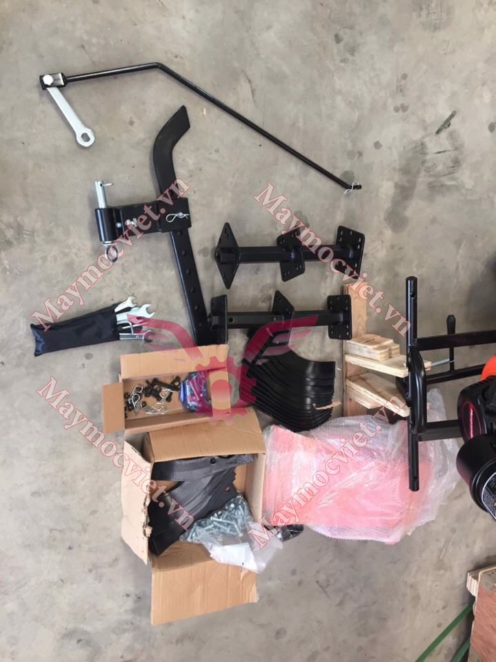 Sản phẩm đi kèm với các phụ kiện bao gồm: lưỡi phay, túi dụng cụ, bạn cũng có thể lựa chọn thêm bánh xe cho ruộng nhão, bánh xe làm cỏ.