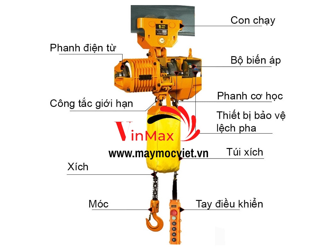Công tắc giới hạn: Công tắc giới hạn có chức năng bảo vệ xích tải, không để xích bị cuốn lên quá mức.