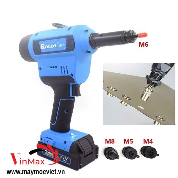 - Đầu rút ốc đi kèm theo máy: M4, M5, M6, M8 (cần sử dụng M3 & M10 mua thêm đầu)