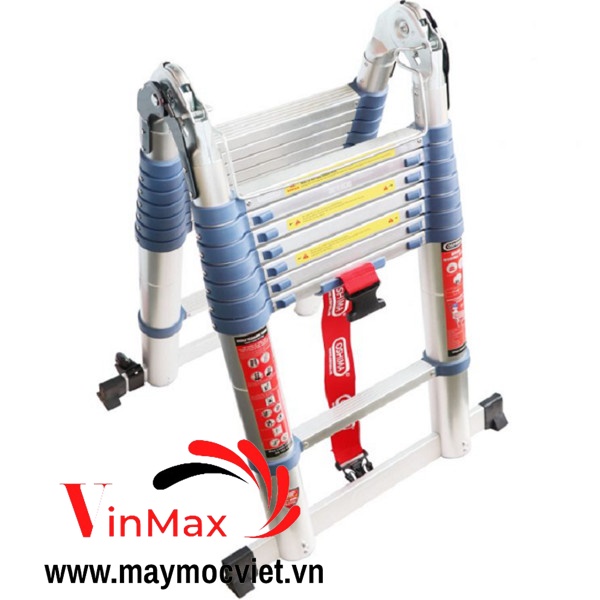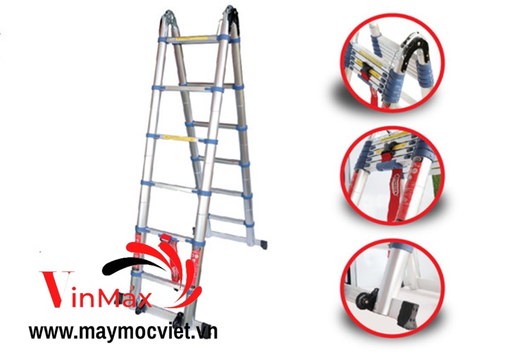 Chốt khóa bằng thép mạ kẽm an toàn tuyệt đối, cơ chế chống kẹt tay khi xếp thang