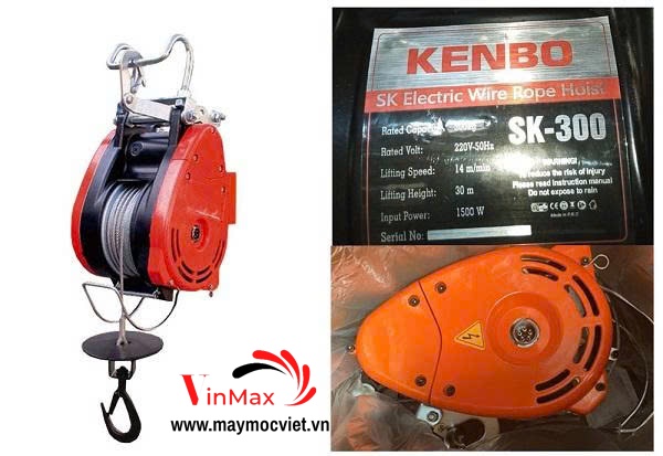 Tời điện treo Kenbo SK-300 thuộc dòng tời nâng hạ tốc độ nhanh, hoạt động bằng điện 220V một pha, phù hợp sử dụng ở nhiều địa điểm khác nhau. Máy được trang bị dây cáp dài 30m, tải trọng nâng tối đa 300kg, tốc độ nâng nhanh từ 14–19m/phút (thậm chí có phiên bản lên tới 30m/phút), giúp công việc nâng hạ diễn ra nhanh chóng và tiết kiệm thời gian.