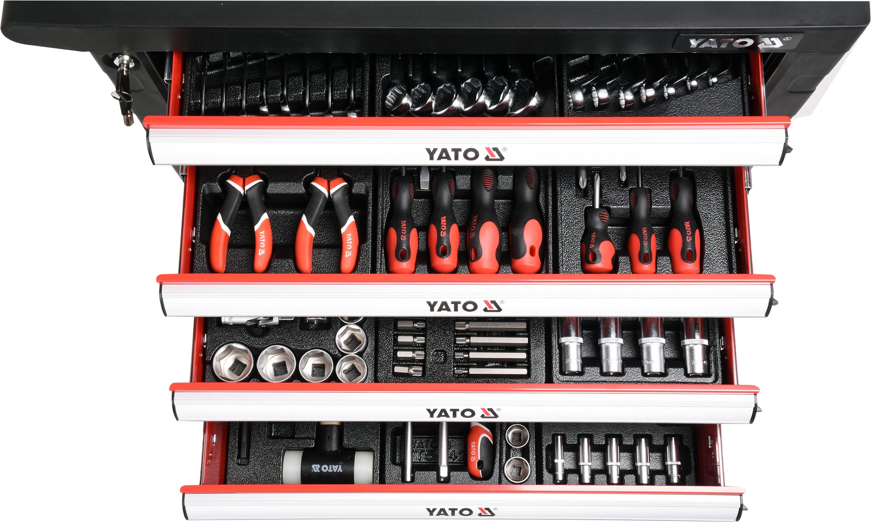 Tủ đồ nghề sửa chữa cao cấp YT-55300 có đầy đủ các chi tiết thông dụng nhất hiện nay như: cờ lê mỏ lết, kìm kẹp các loại, đầu khẩu tay vặn, đầu khẩu dùng cho súng, các loại tua vít và đầu vít, bộ búa đục đột đa năng, tay vặn khẩu các loại.