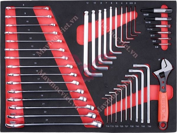 | Model: YT-55290 - Chất liệu: Thép bọc nhựa, sơn tĩnh điện - Số lượng chi tiết: 211 chi tiết. - Số ngăn: 7 ngăn - Trong lượng: 72 kg - Kích thước: 980x770x465 mm - Có 4 bánh xe |