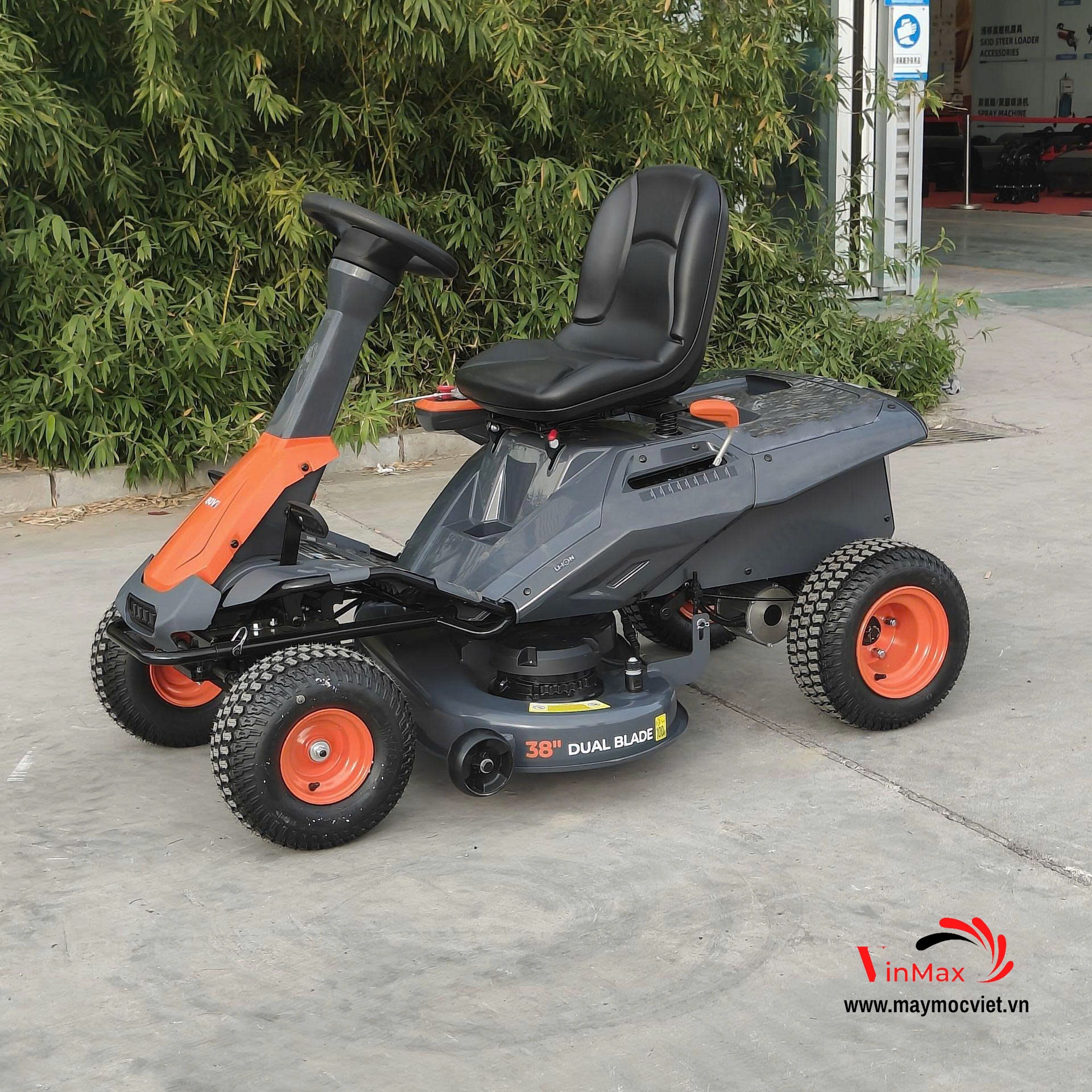 Máy cắt cỏ ngồi lái được trang bị lưỡi kép (Dual Blade) đường kính 38 inch, mâm đôi giúp cắt đều và mịn, thích hợp với mọi loại cỏ. Thiết kế chỗ ngồi êm ái, tay lái điều khiển linh hoạt, giúp người sử dụng vận hành lâu dài mà không gây mệt mỏi. Máy có hệ thống bánh xe chắc chắn, di chuyển tốt trên nhiều địa hình khác nhau.
