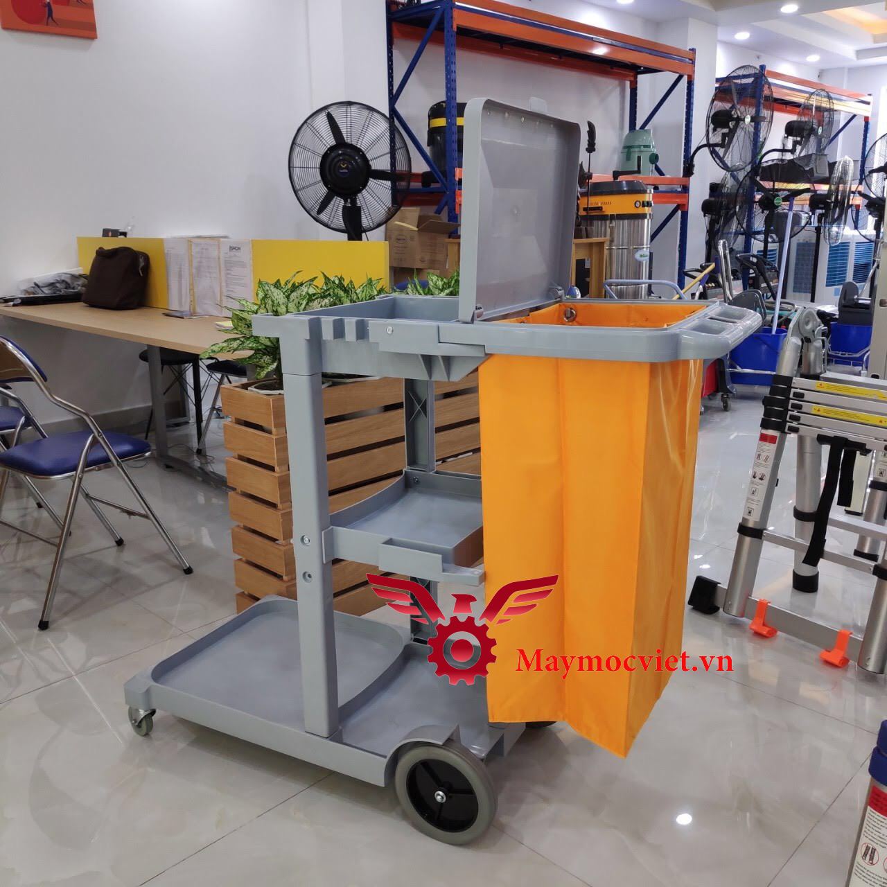 – Chức năng: có thể tích hợp thêm bộ vắt cây lau nhà, chứa đồ, thu dọn đồ dơ, dụng cụ linh tinh khác.